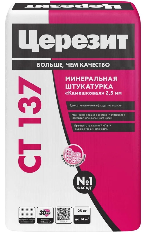 Для минеральной декоративной штукатурки Ceresit CT 137 характерны такие достоинства, как: