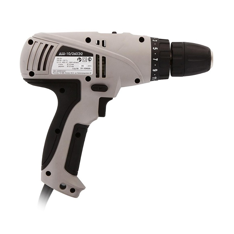 Технические характеристики «Дрель-шуруповерт сетевая Интерскол ДШ-10/260Э2, 10 мм, 0,32кВт, 35 Нм, реверс, 0-1800 об/мин»