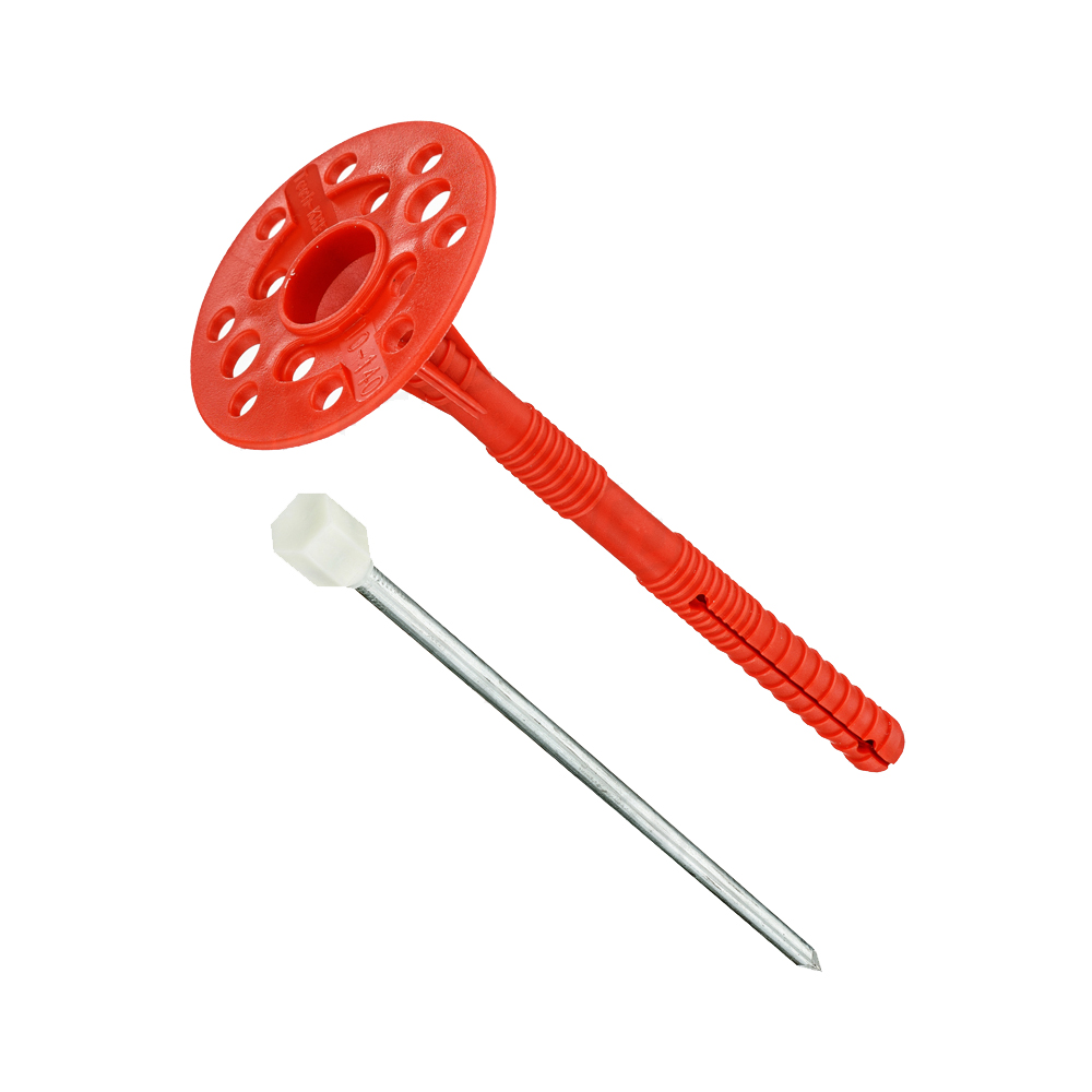 Различная длина дюбелей позволяет крепить теплоизоляционные материалы различной толщины. Установка производится методом сквозного монтажа, крепление в стене производится забиванием металлического гвоздя. В среднем на 1м2 площади теплоизоляции применяется 5 дюбелей.