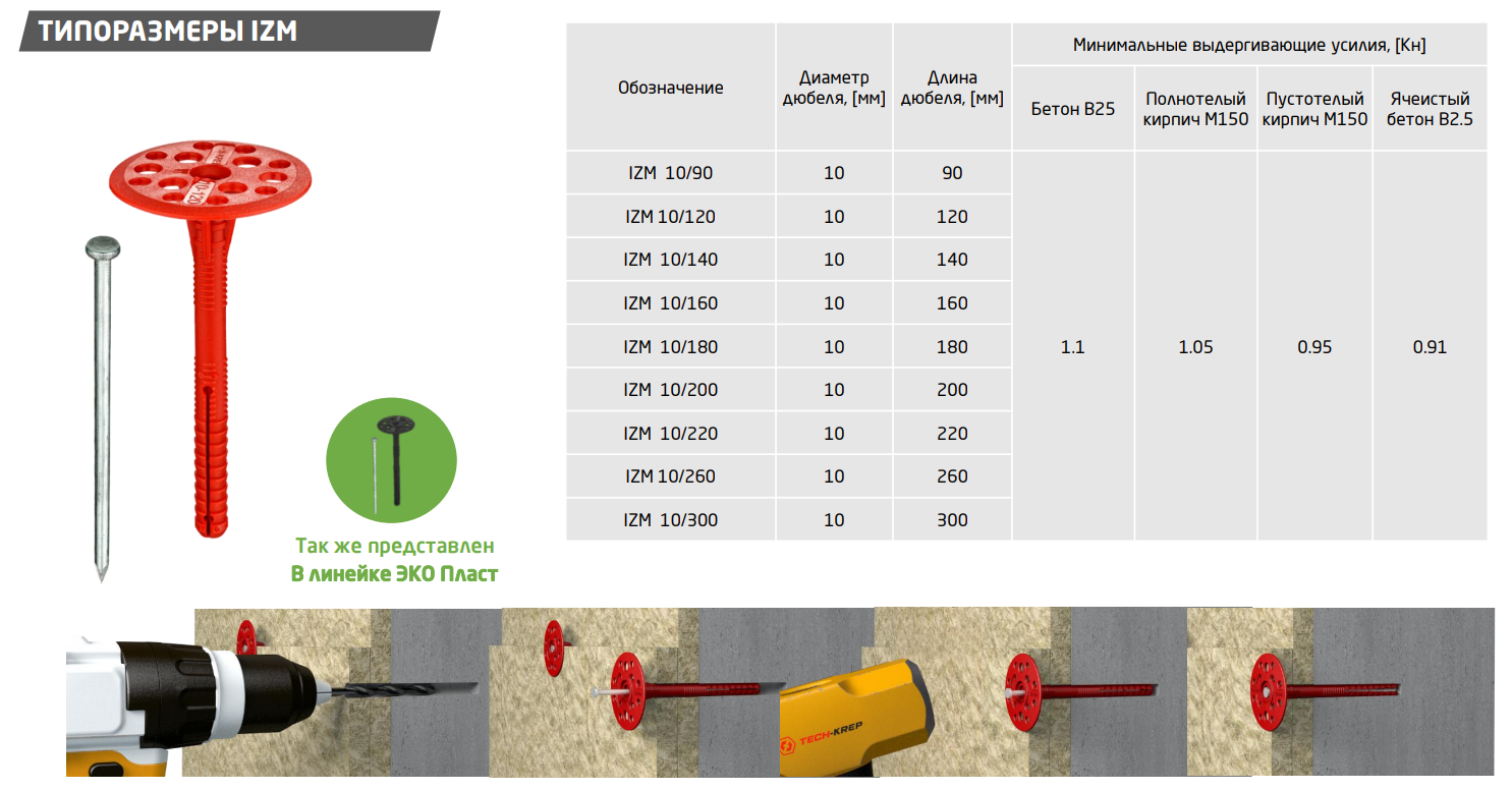 Куда используют дюбель для теплоизоляции Tech-Krep IZM 10х160