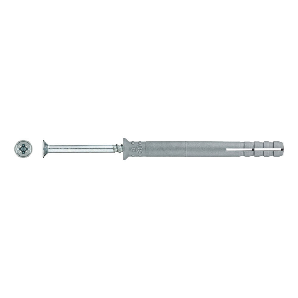 Дюбель гвоздь с потайной головкой 8х80 мм SM-L применяется для крепления к бетону, полнотелым материалам, кирпичу с пустотами, пенобетону всевозможных деревянных деталей, включая обрешетку под штукатурку, рамы, стыковочные стеновые или штукатурные профили, плинтусы, настенные уголки, а также кабельные каналы, зажимы для кабеля и труб, тонколистовую сталь и другие элементы.