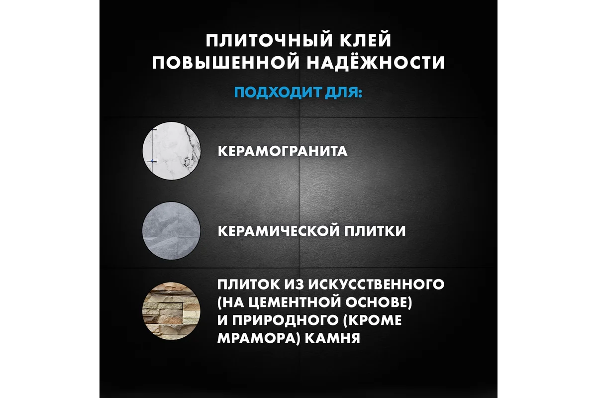 - Высокая адгезия: плитка надежно фиксируется, исключая смещение;