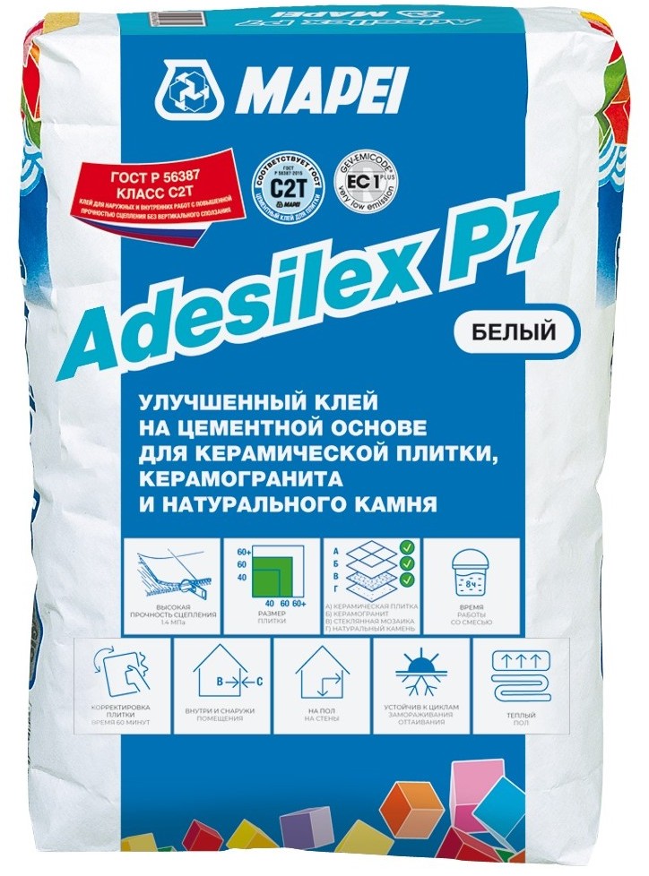 ADESILEX P7 white — это отличный выбор для тех, кто ищет надёжный и долговечный клей для укладки плитки.