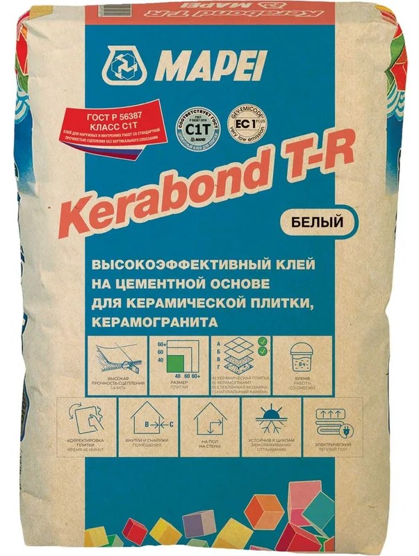 KERABOND T-R — это высококачественный клей на цементной основе, предназначенный для укладки керамической плитки, керамогранита, мозаики и натурального камня. Он обладает улучшенными характеристиками, которые делают его идеальным выбором для профессиональных строителей и домашних мастеров.