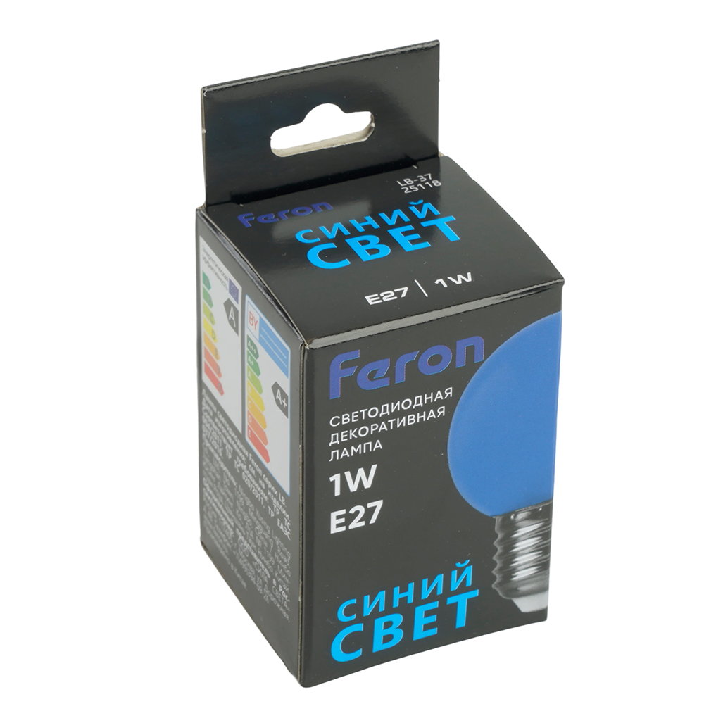 Технические характеристики «Лампа светодиодная Feron LB-37 Шарик E27 1W 230V Синий»