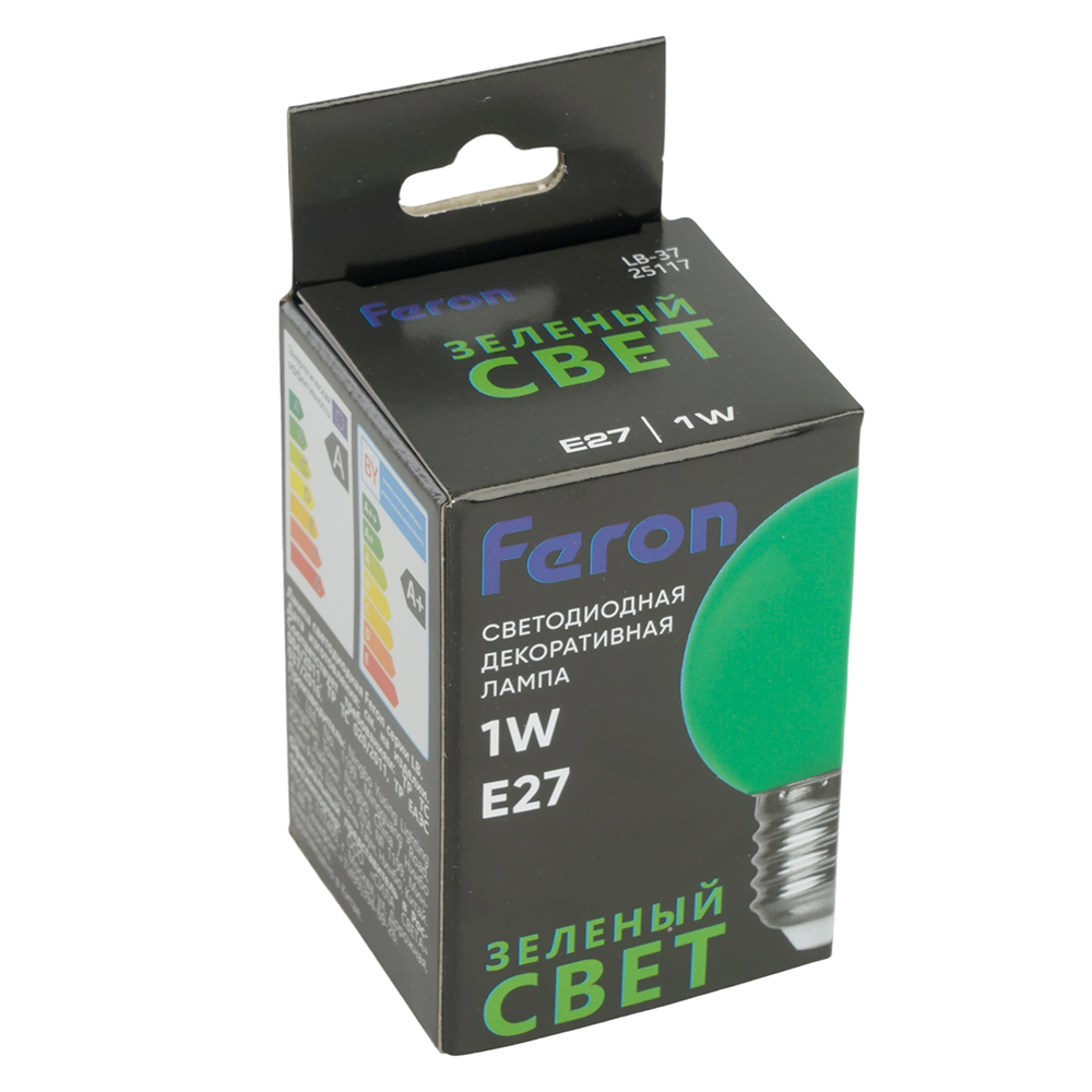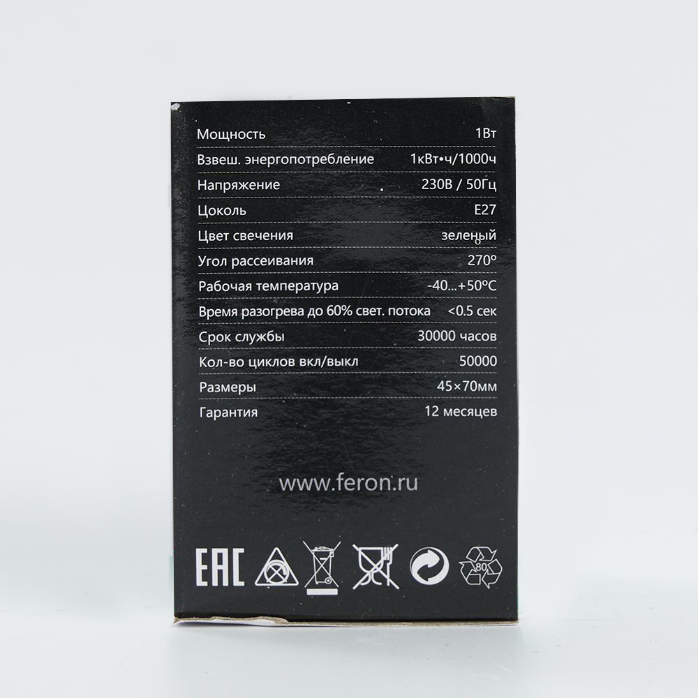 Технические характеристики «Лампа светодиодная Feron LB-37 Шарик E27 1W 230V Зеленый»