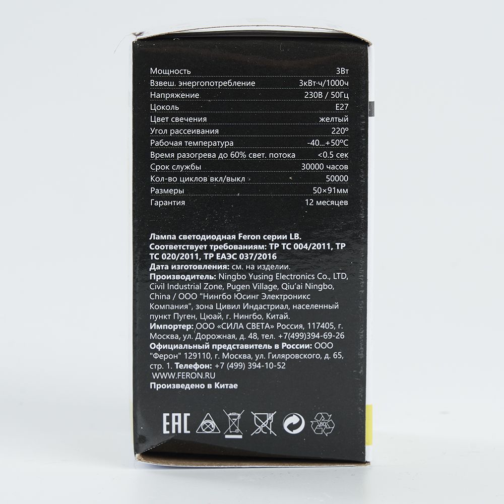 Технические характеристики «Лампа светодиодная Feron LB-375 E27 3W 230V желтый»
