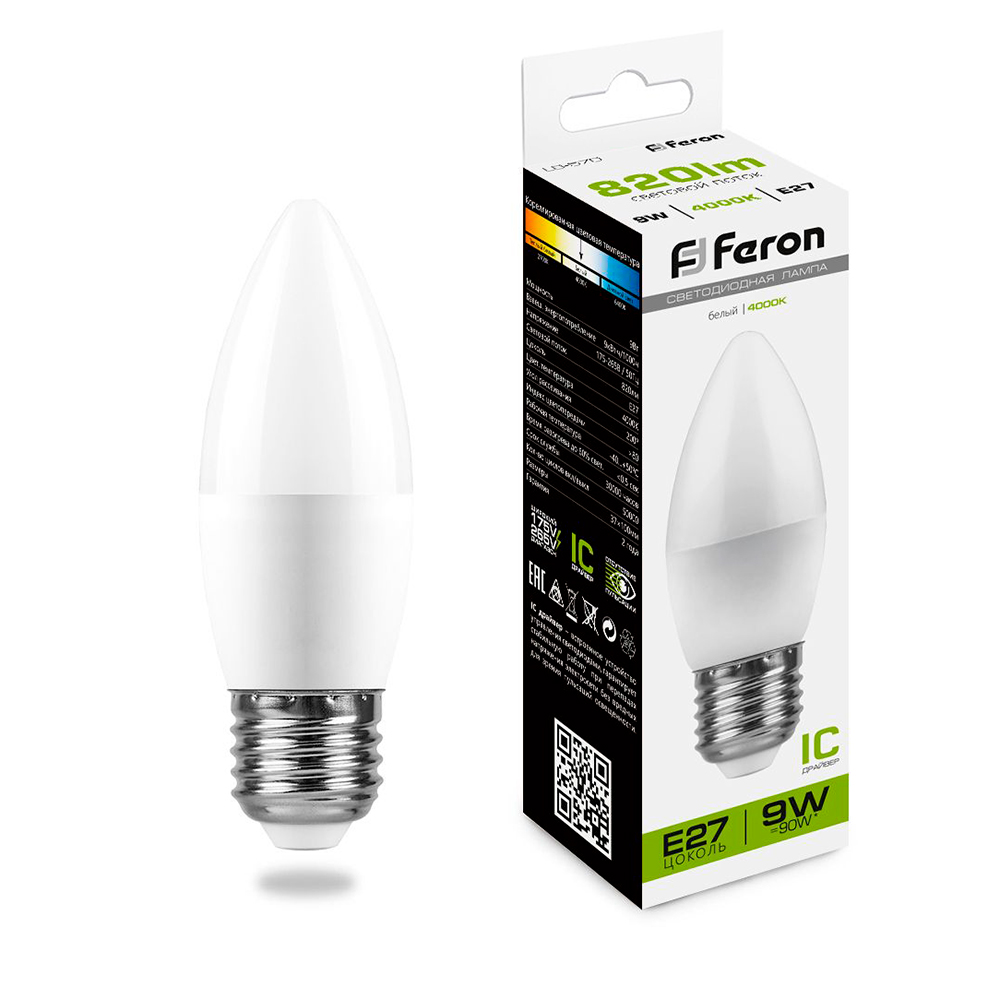 Технические характеристики «Лампа светодиодная Feron LB-570 Свеча E27 9W 175-265V 4000K»