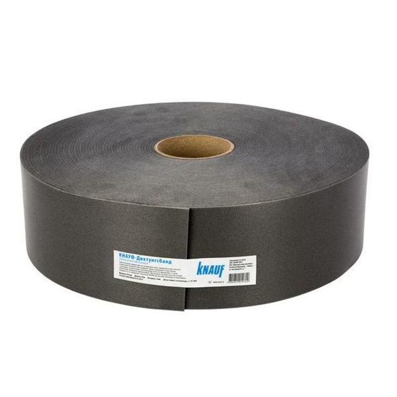 Лента уплотнительная Knauf Дихтунгсбанд 95 мм х 30 м представляет собой самоклеящуюся микропористую полимерную ленту, предназначенную для плотного сопряжения металлических профилей каркаса облицовок и перегородок с несущими строительными конструкциями в местах примыкания.