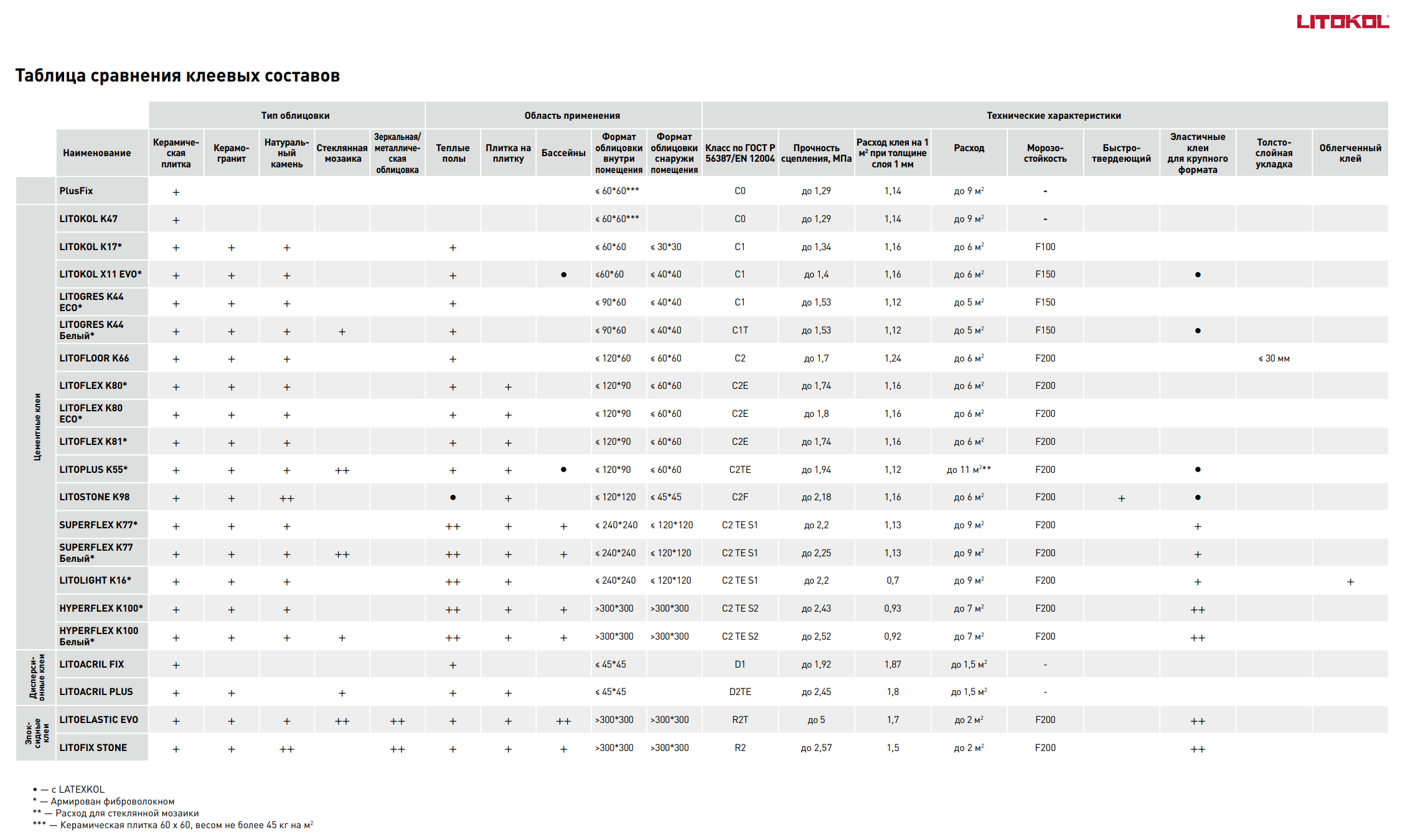Технические характеристики «Плиточный клей Litokol Litoflex K80 / Литокол К80 (класс С2E) 25 кг»
