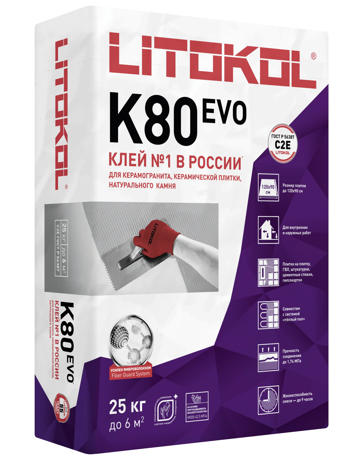 Litokol Litoflex K80 является универсальным клеем с широким спектром использования, который отлично подходит для облицовки стен и полов из различных материалов, полов с подогревом, облицовка террас и балконов, лестниц и цоколей. Подойдет для укладки керамогранита или керамической плитки, покрытий из натурального камня. На покрытиях из камня рекомендуемый размер – 90х90 см.
