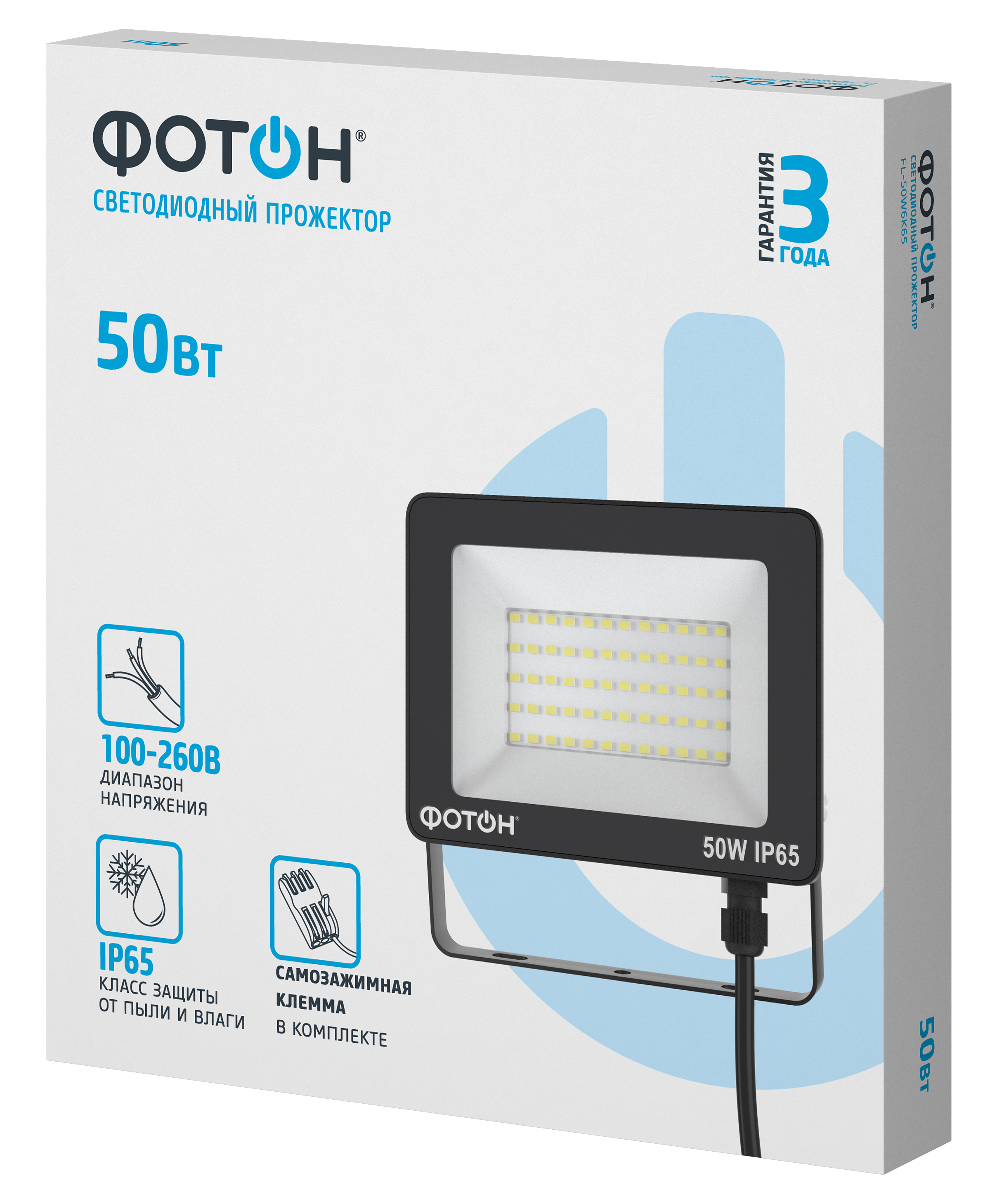 Технические характеристики «Прожектор светодиодный сетевой FL-50W6K65 50W»