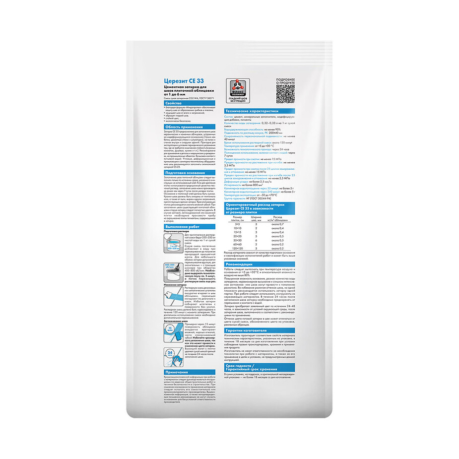 Технические характеристики «Затирка Церезит Comfort CE 33 Белая №01 5 кг»