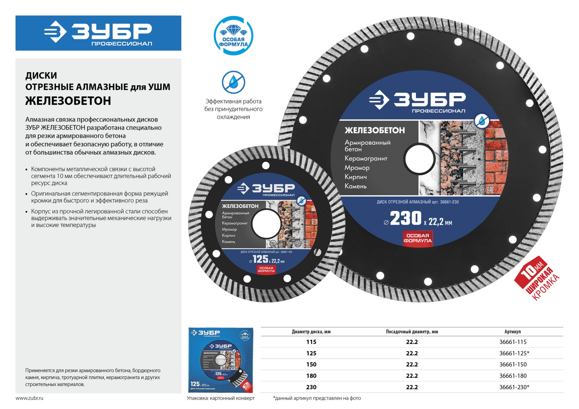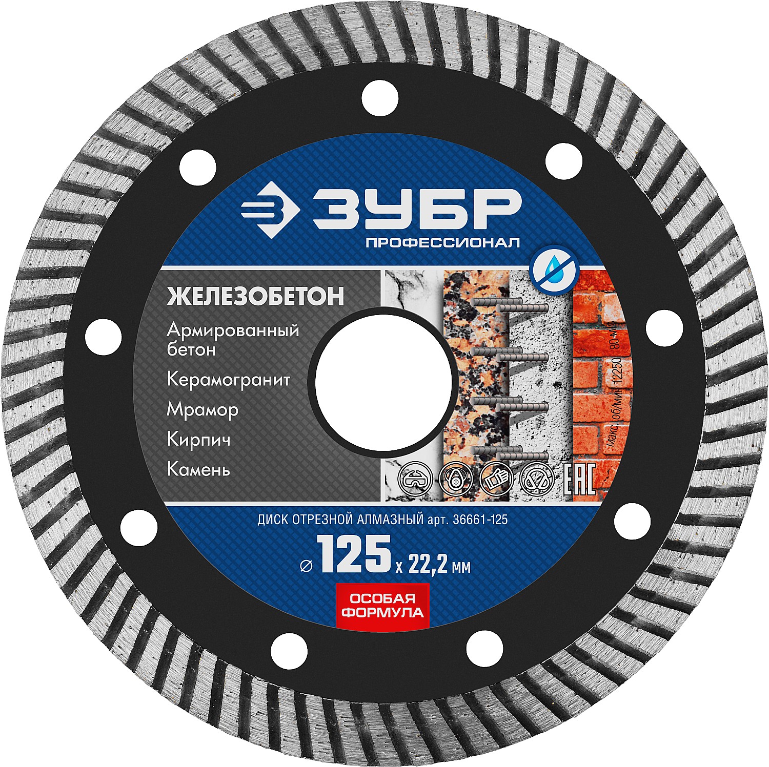 Отгружаем «ЗУБР Железобетон, 125 мм, (22.2 мм, 10 х 2.4 мм), сегментированный алмазный диск, Профессионал (36661-125)» с оптовых складов, рынков и напрямую с заводов.