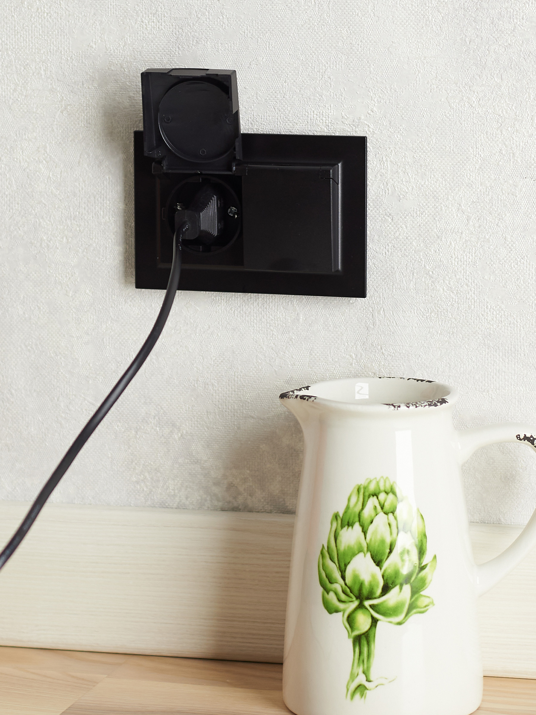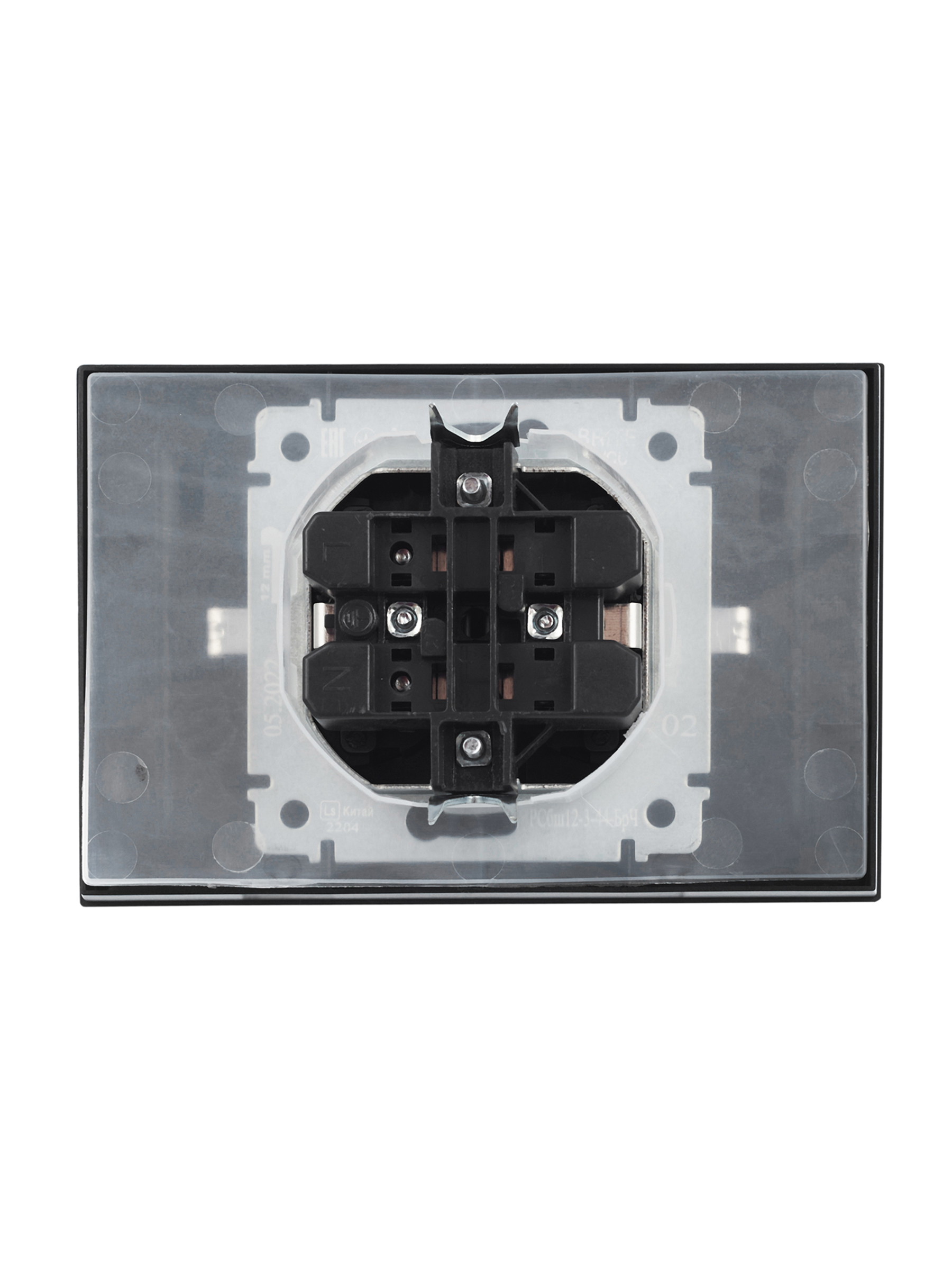 Технические характеристики «BRITE Розетка двойная с заземлением с защитными шторками и крышкой 16А в сборе IP44 РСбш12-3-44-БрЧ черный»
