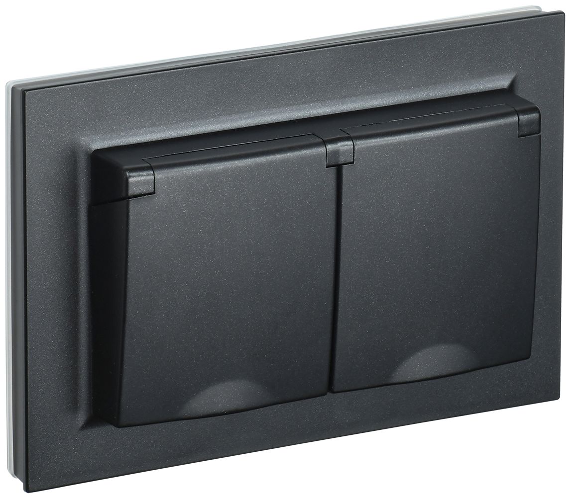 Отгружаем «BRITE Розетка двойная с заземлением с защитными шторками и крышкой 16А в сборе IP44 РСбш12-3-44-БрЧ черный» с оптовых складов, рынков и напрямую с заводов.