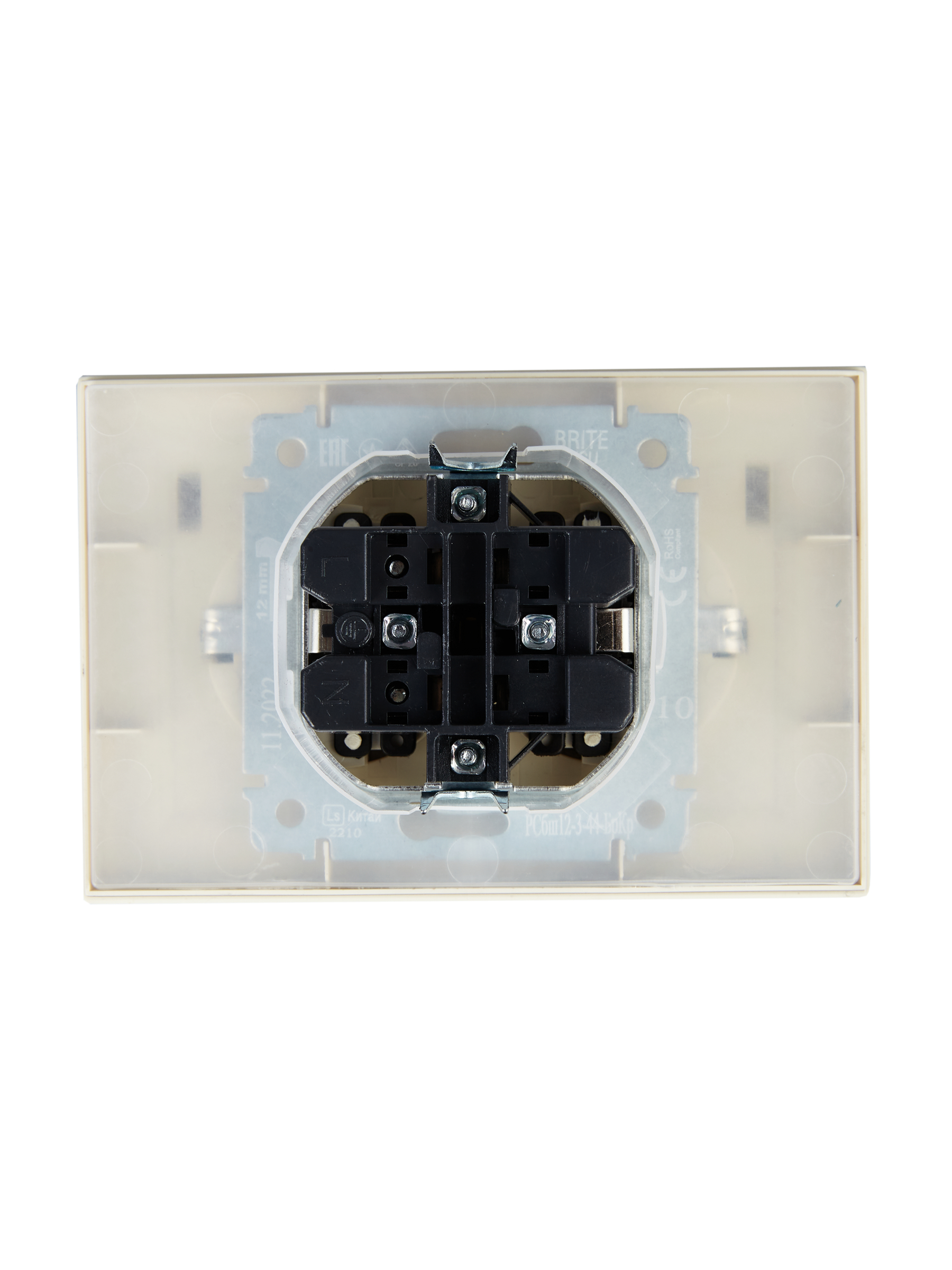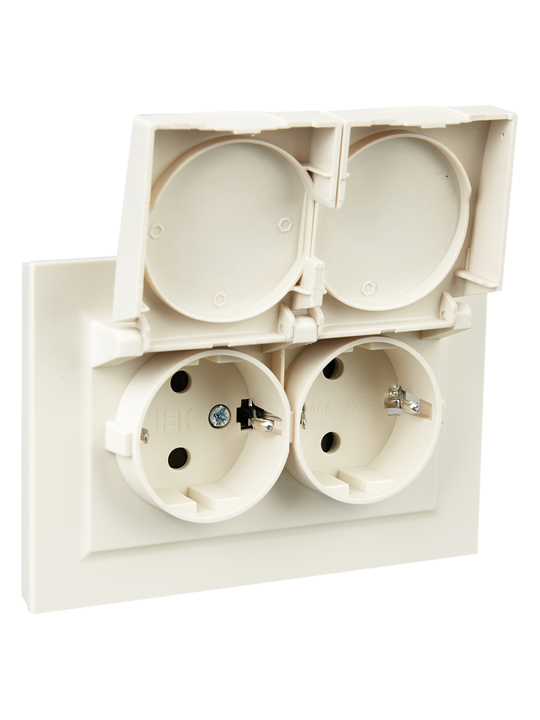 Технические характеристики «BRITE Розетка двойная с заземлением с защитными шторками и крышкой 16А в сборе IP44 РСбш12-3-44-БрКр бежевый»