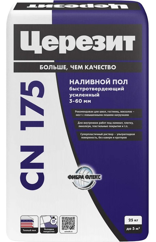 Самовыравнивающийся наливной пол Церезит CN 175 25 кг предназначен для выравнивания пола и устройства стяжек внутри зданий, толщина слоя от 3 до 60 мм. Сухая смесь Церезит CN 175 используется в помещениях с комнатными температурами и низкой влажностью. В технических зданиях, где значительна нагрузка, использовать данную смесь запрещено!