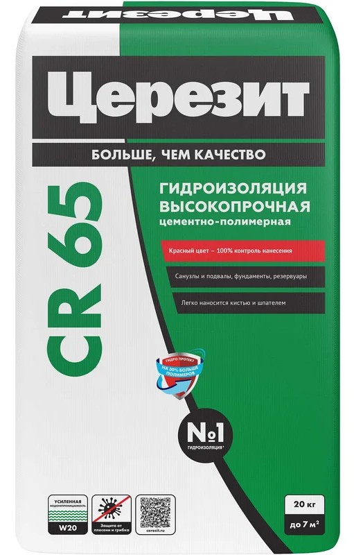 Церезит CR 65 используется для гидроизоляции подвалов, фундаментов, цоколей, резервуаров, бассейнов, санузлов, душевых и других помещений с повышенной влажностью. Наносится на бетон, кирпич, цементные стяжки и штукатурки.
