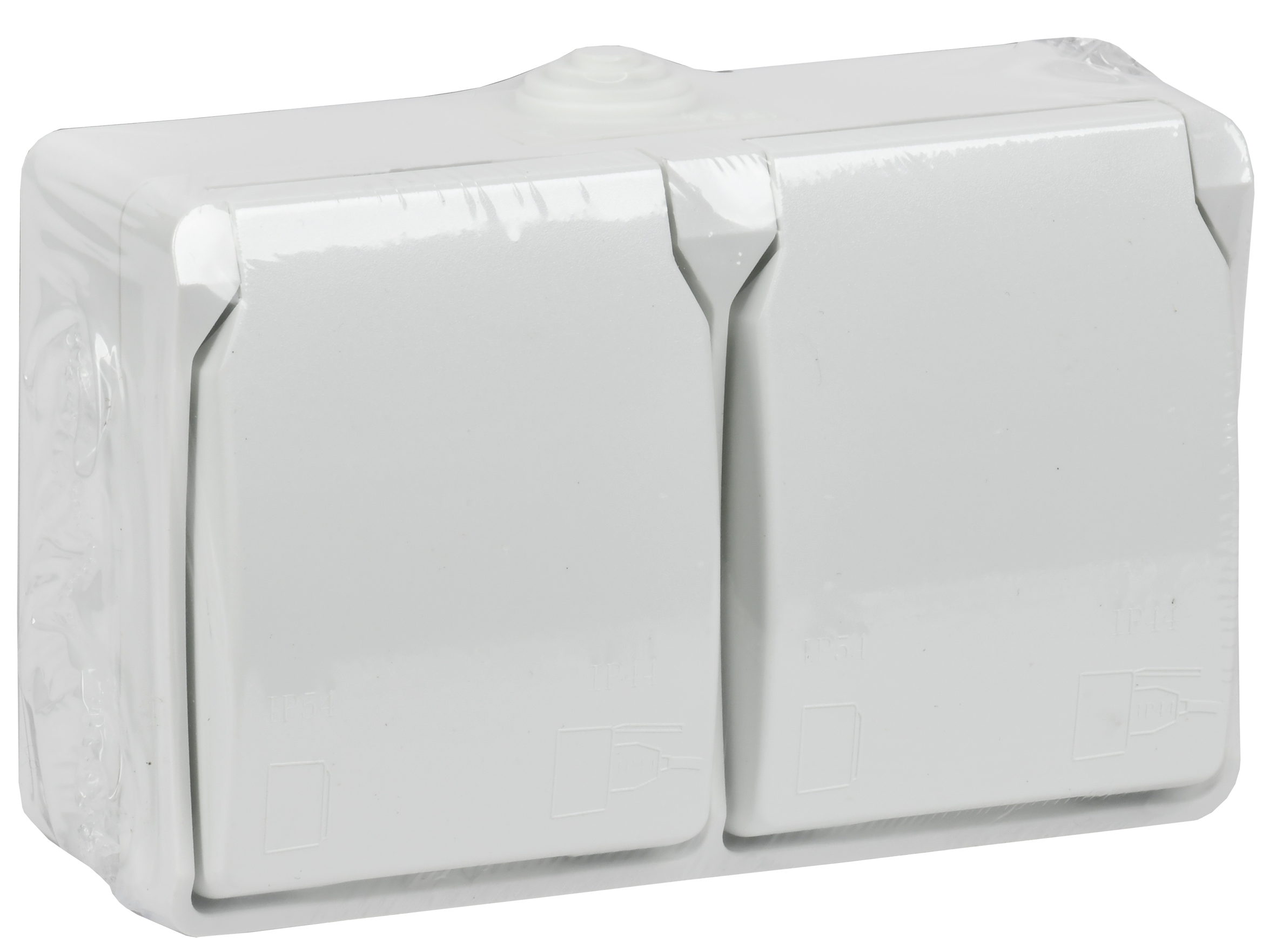 Технические характеристики «FORS Розетка 2-местная с заземлением для открытой установки 16А IP54 РСб22-3-ФБ белый»