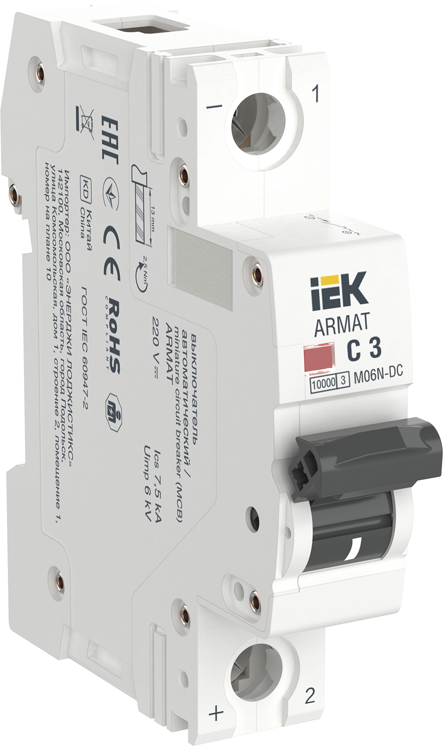 Технические характеристики «IEK ARMAT Автоматический выключатель M06N-DC 1P C 3А»