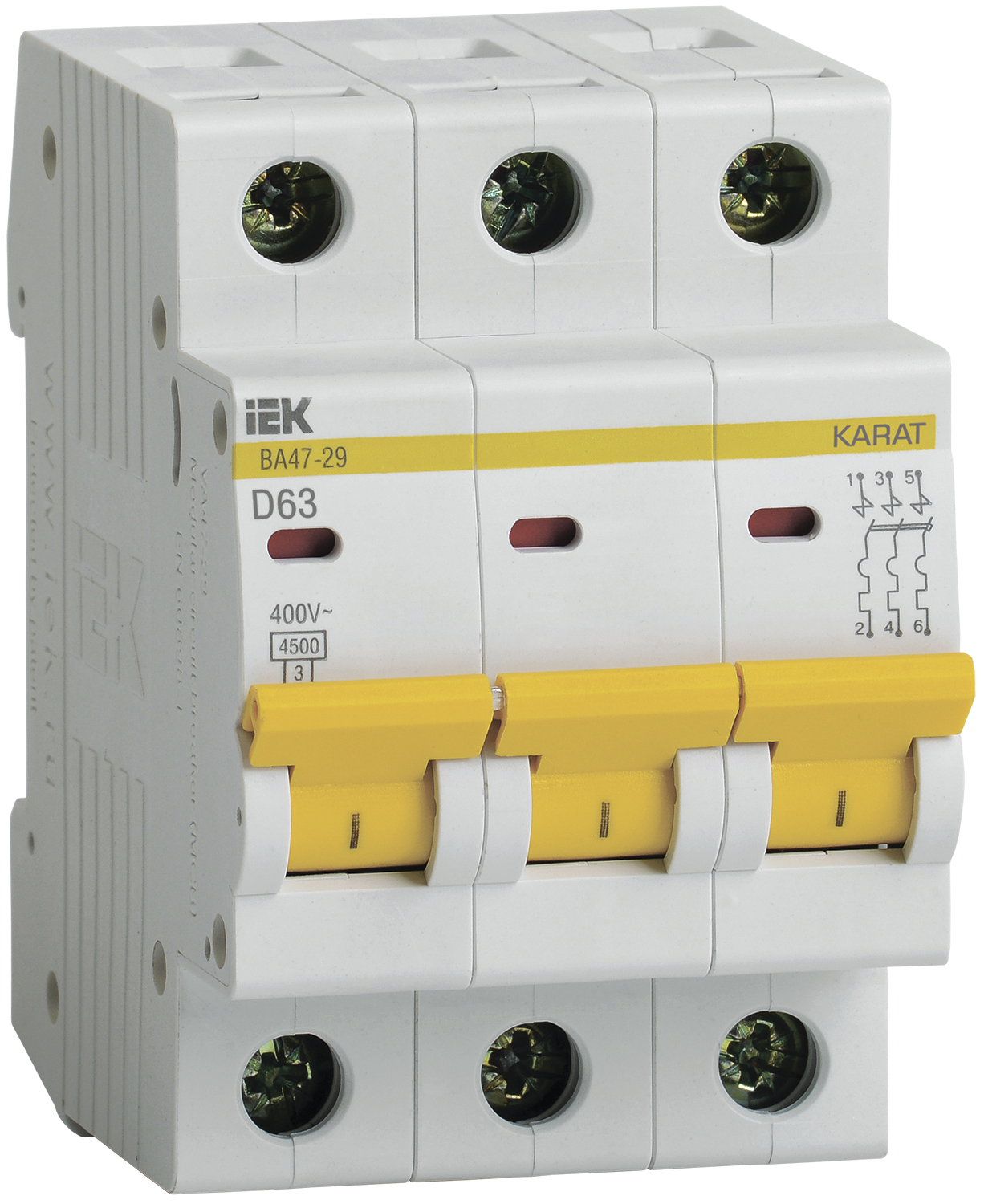 Технические характеристики «IEK KARAT Автоматический выключатель ВА47-29 3Р 63А 4,5кА х-ка D»