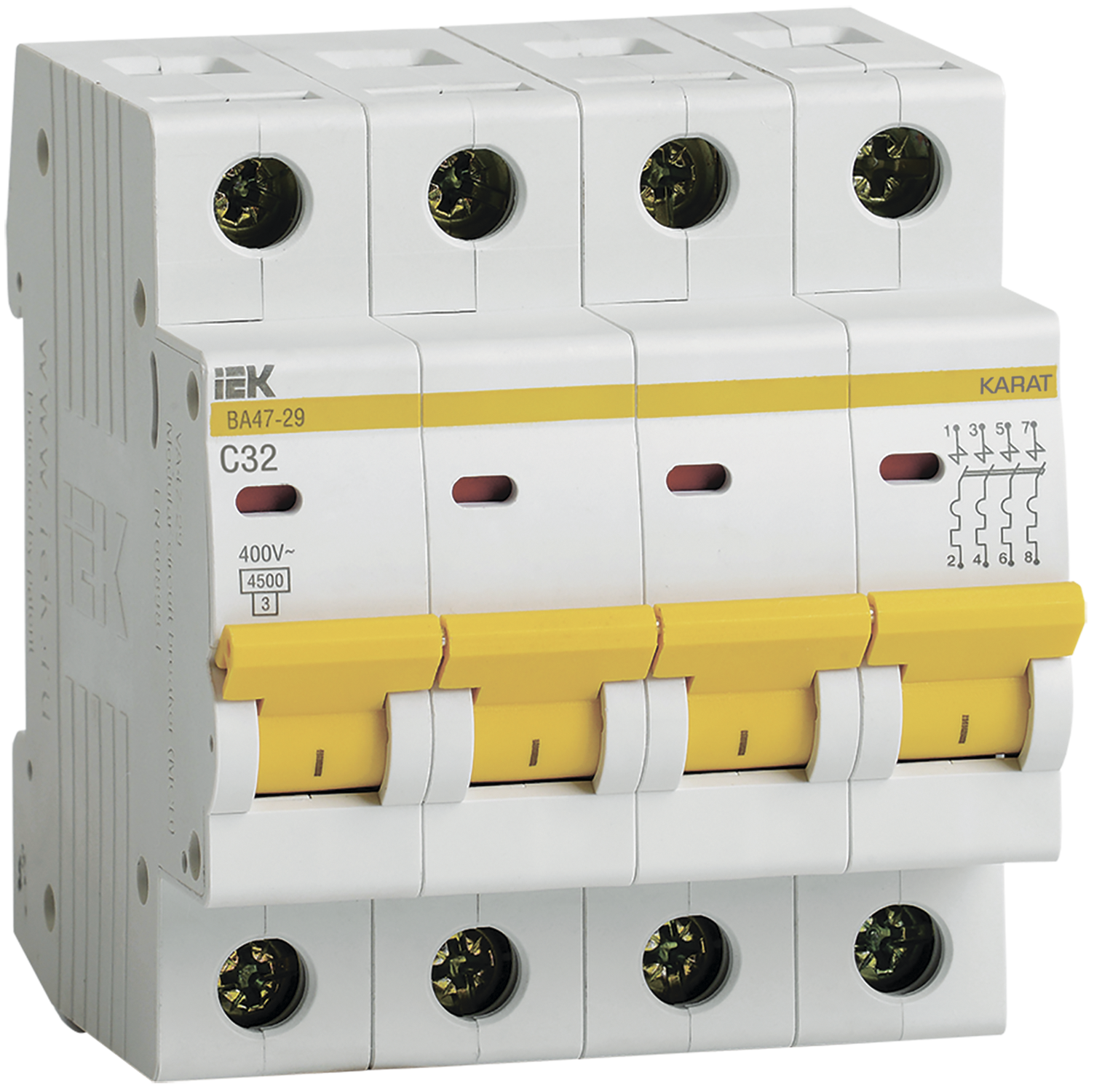 Отгружаем «IEK KARAT Автоматический выключатель ВА47-29 4Р 32А 4,5кА х-ка С» с оптовых складов, рынков и напрямую с заводов.