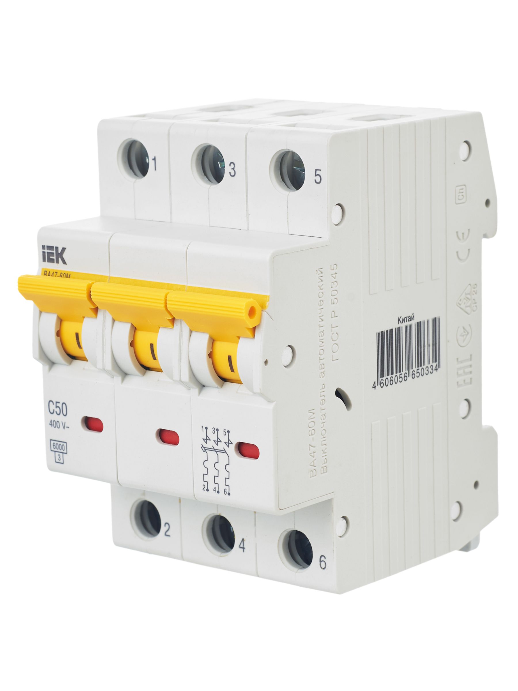 Технические характеристики «IEK KARAT Выключатель автоматический ВА47-60M 3Р 50А 6кА С»