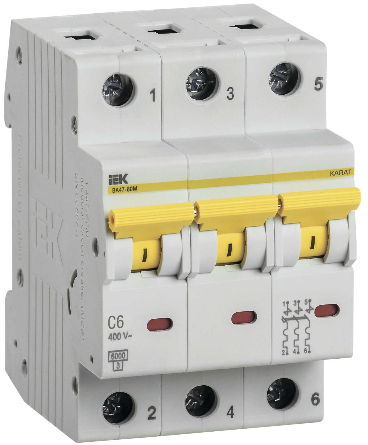 Отгружаем «IEK KARAT Выключатель автоматический ВА47-60M 3Р 6А 6кА С» с оптовых складов, рынков и напрямую с заводов.