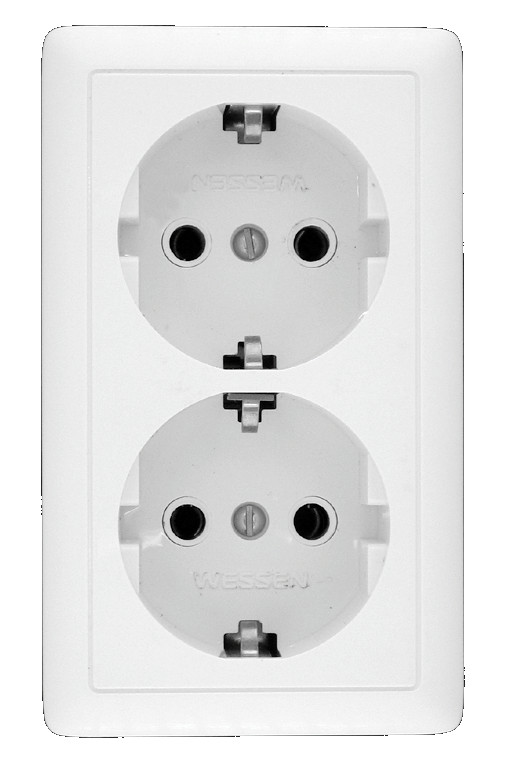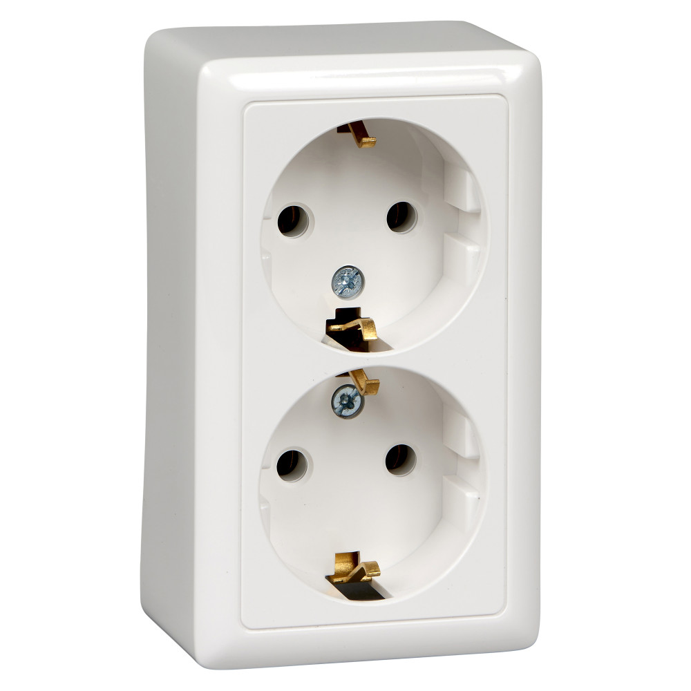 Технические характеристики «ХИТ Розетка двойная наружная белая с заземлением без шторок 16А 250В»