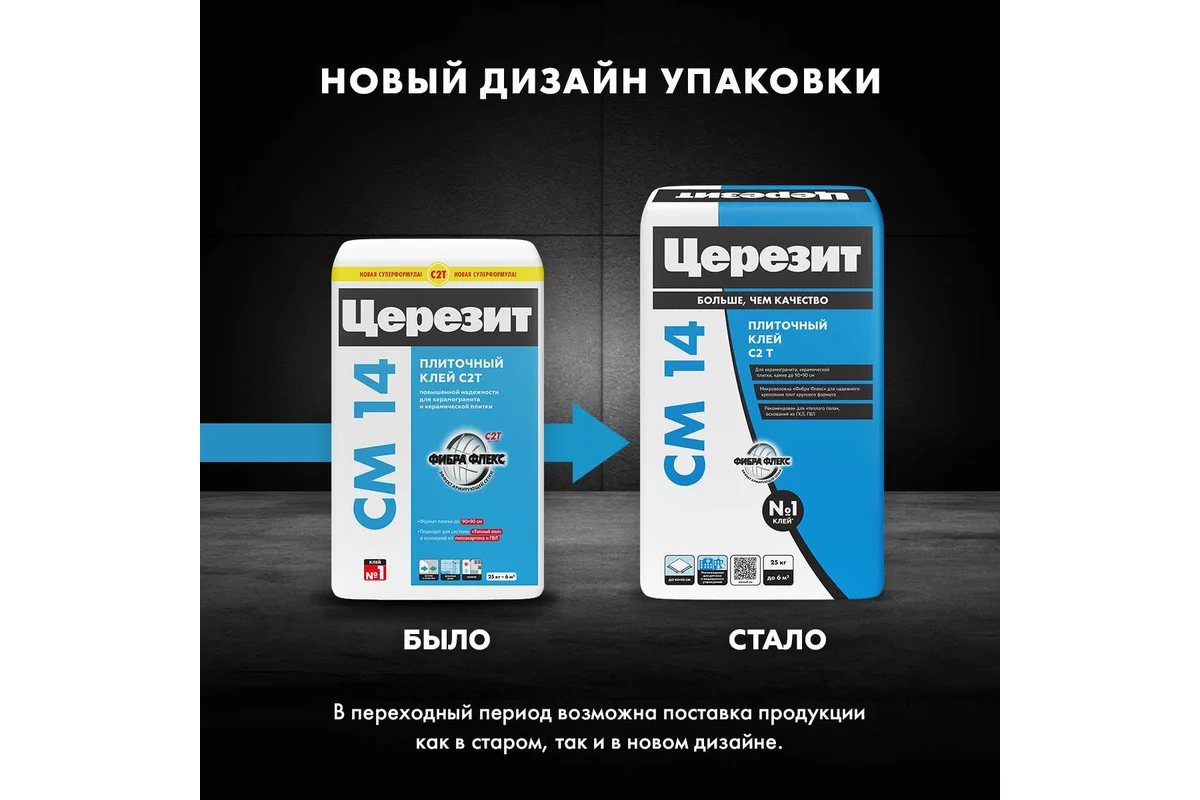 Церезит CM 14 – высококачественный цементный клей с полимерными добавками для приклеивания плитки и керамогранита внутри и снаружи помещений. Идеально подходит для укладки плит любого формата, включая крупноформатную керамику и керамогранит, на бетонные, цементно-песчаные и гипсовые основания.