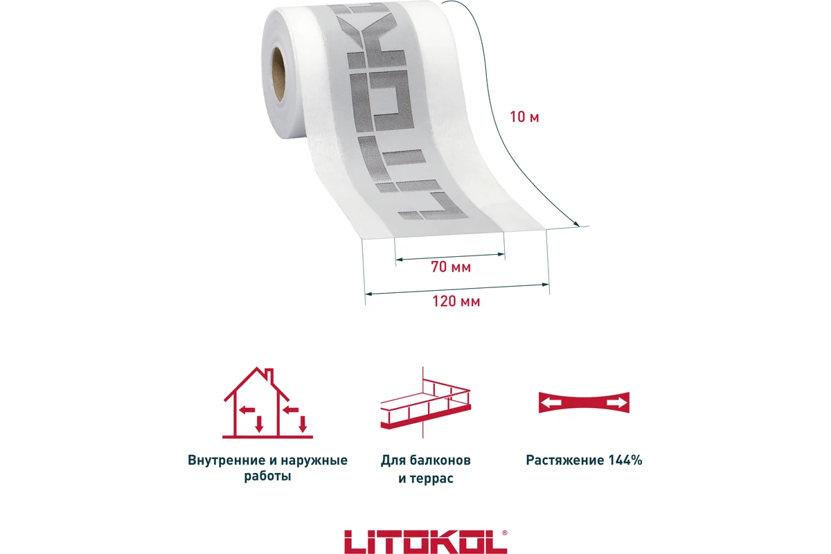 Лента в рулоне LITOBAND R10, системное решение по гидроизоляции, разработанное с учётом специфики влажных помещений, таких как ванные комнаты, душевые кабины, туалеты, большие кухни, а также каналы, резервуары и ёмкости в том числе с питьевой водой и т.д.
