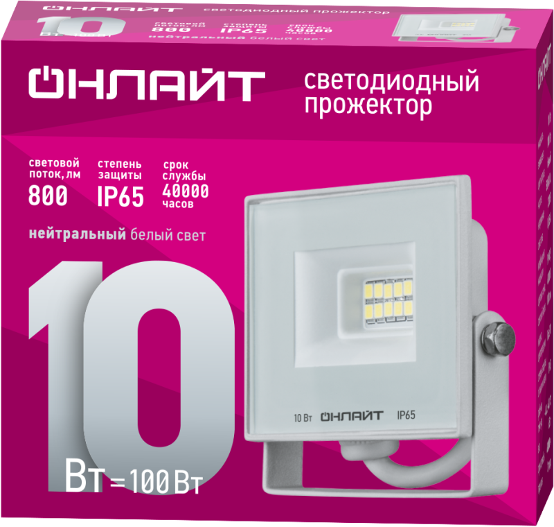 Технические характеристики «Прожектор светодиодный 90 130 OFL-10-4K-WH-IP65-LED 10Вт 4000К IP65 800лм бел. ОНЛАЙТ 90130»