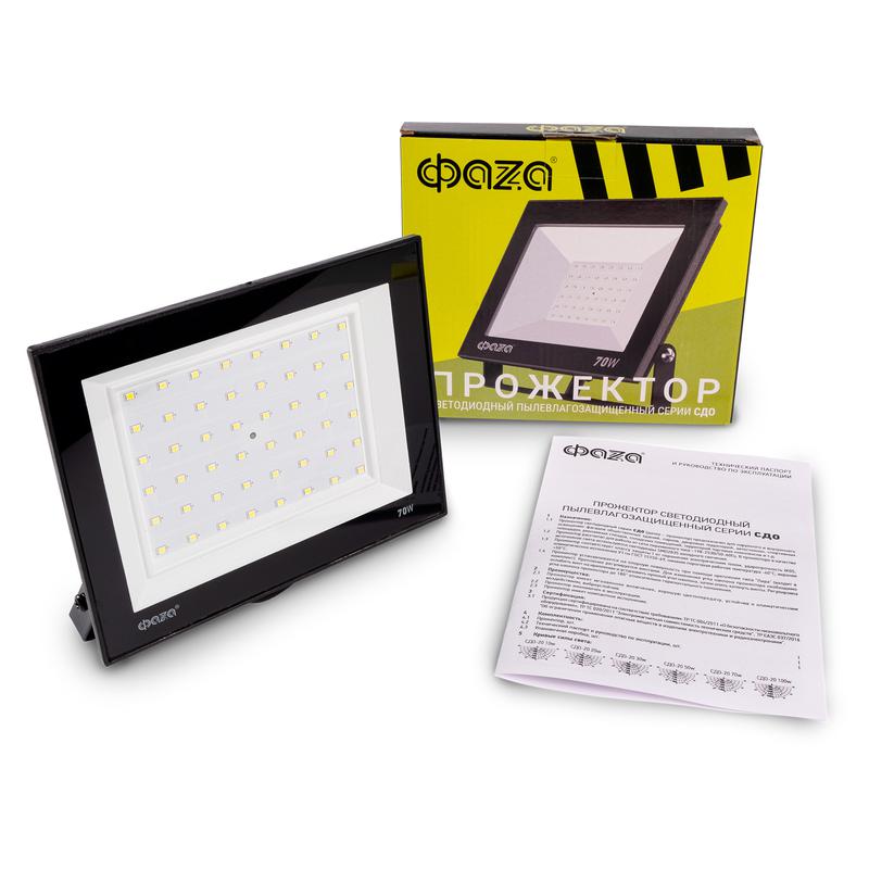 Отгружаем «Прожектор светодиодный СДО-20 70Вт 6500К IP65 230В BL ДО прозр. закален. стекло ФАZА 5047327» с оптовых складов, рынков и напрямую с заводов.