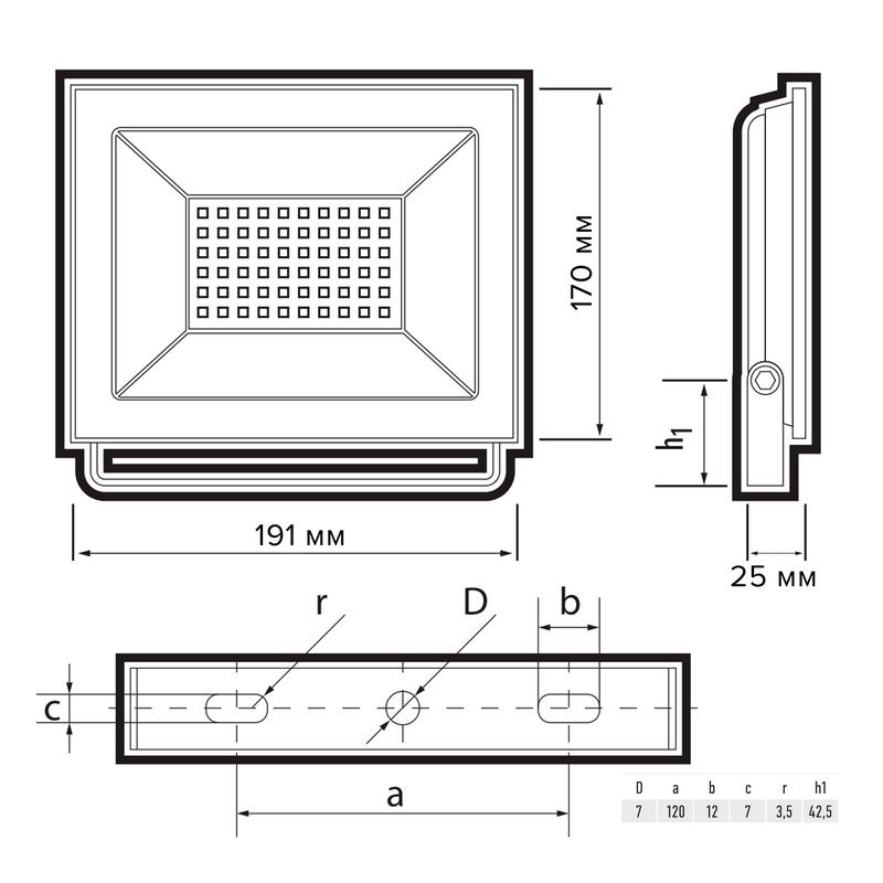 Технические характеристики «Прожектор светодиодный СДО-20 70Вт 6500К IP65 230В BL ДО прозр. закален. стекло ФАZА 5047327»
