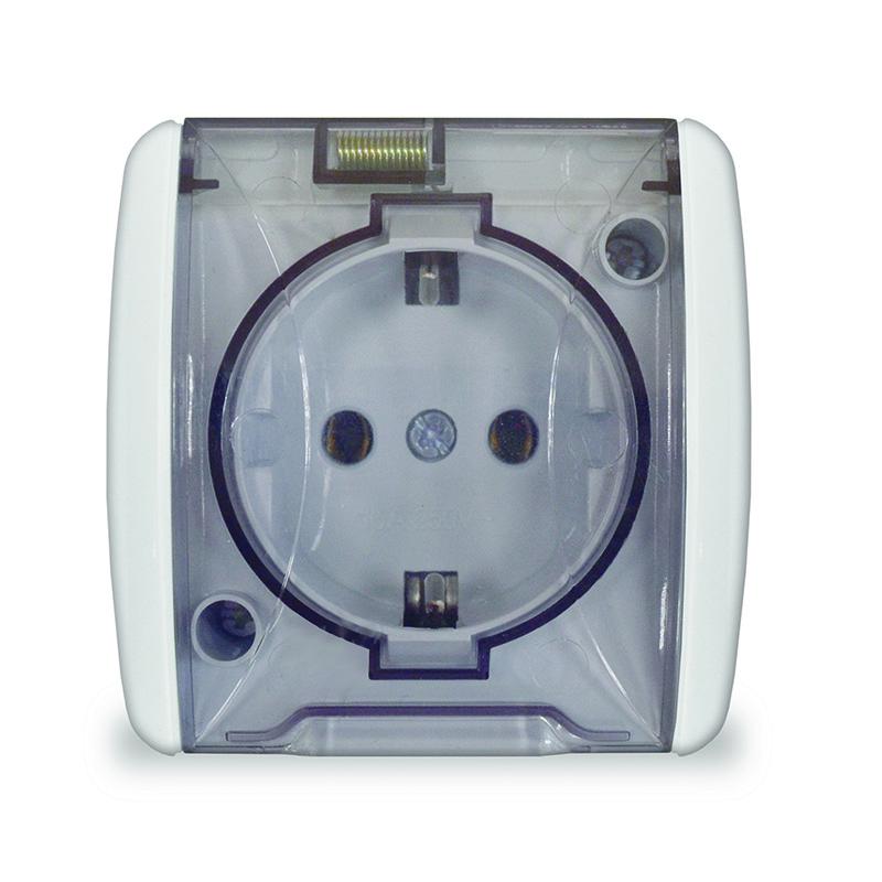 Технические характеристики «Розетка 1-м ОП Клио 16А IP44 с заземл. с прозр. крышкой бел. UNIVersal К2229»