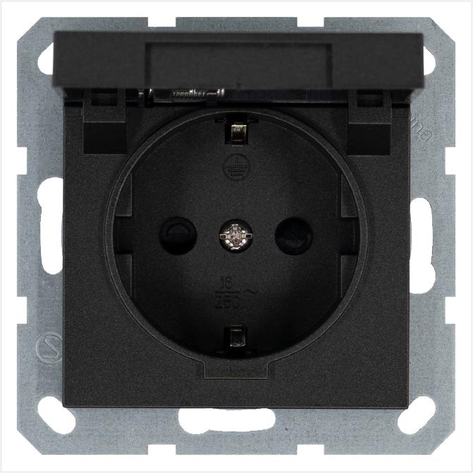 Технические характеристики «Розетка 1-м Shuko 16А IP20 с заземл. защ. шторки с крышкой механизм антрацит Jasmart G5505B»