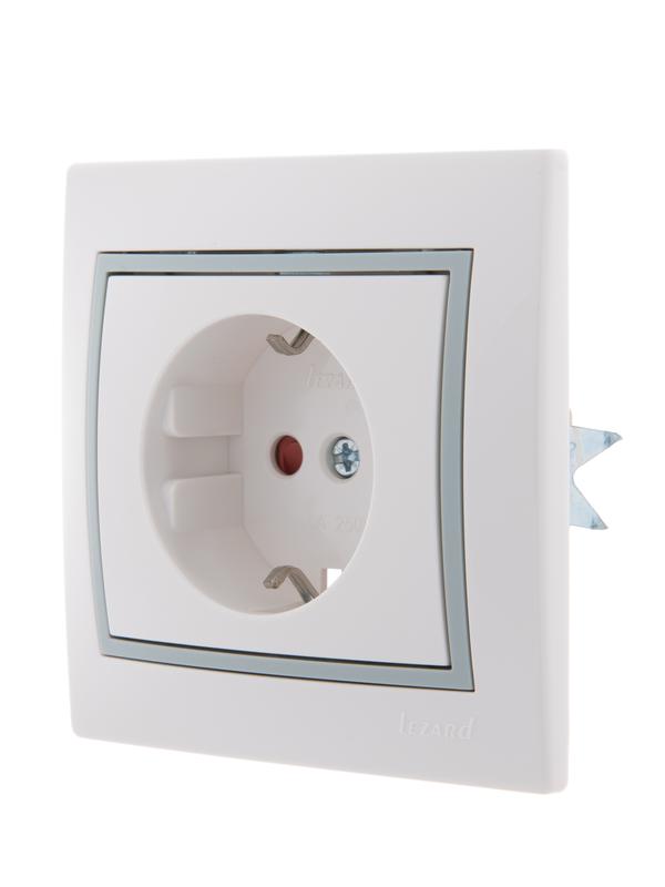 Технические характеристики «Розетка 1-м СП Mira 16А IP20 с заземл. защ. шторки с сер. вставкой керамика бел. LEZARD 701-0215-124»