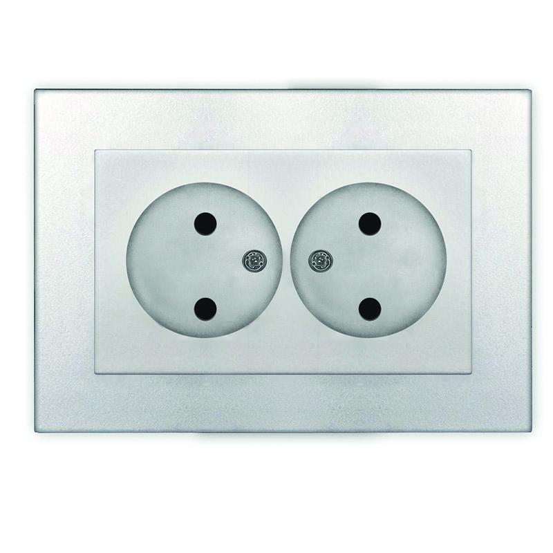 Технические характеристики «Розетка 2-м СП Афина 16А IP20 без заземл. в сборе серебр. Universal A0102-S»