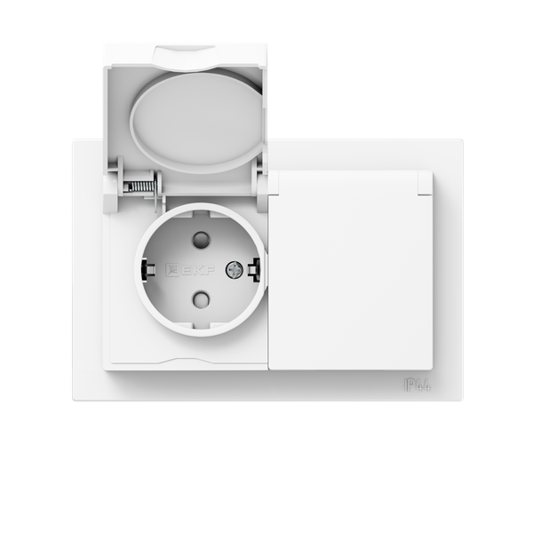 Технические характеристики «Розетка 2-м СП Эпика 16А IP44 с заземл. защ. шторки с рамкой с крышками механизм бел. EKF UP1-SOW-211-44»