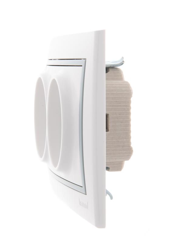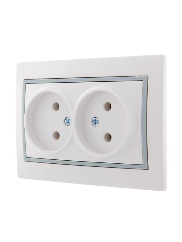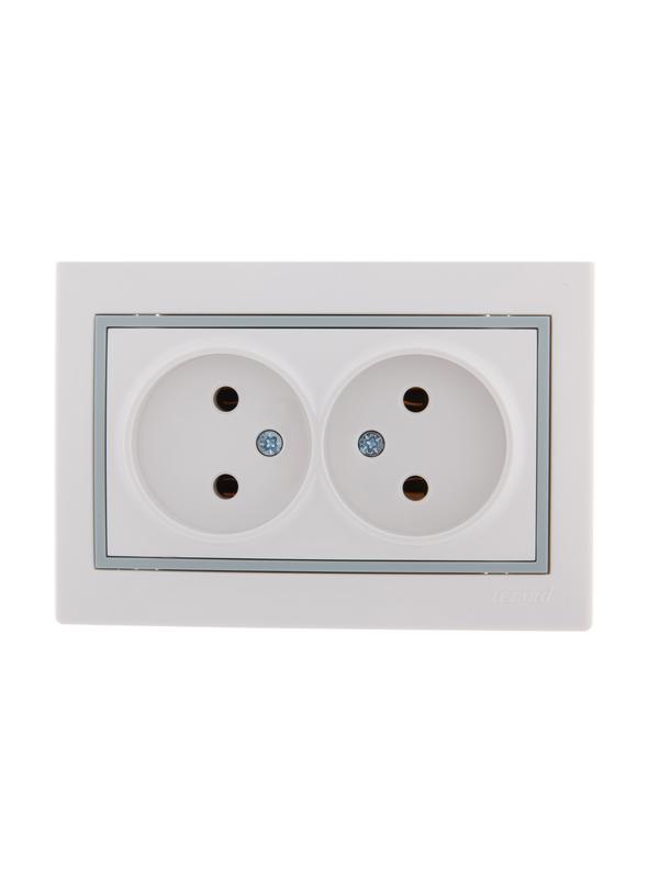 Технические характеристики «Розетка 2-м СП Mira 16А IP20 без заземл. с сер. вставкой керамика бел. LEZARD 701-0215-128»