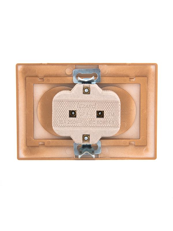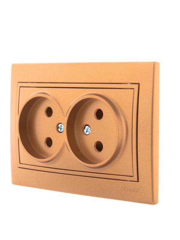 Технические характеристики «Розетка 2-м СП Mira 16А IP20 без заземл. со вставкой керамика зол. метал. LEZARD 701-1313-128»