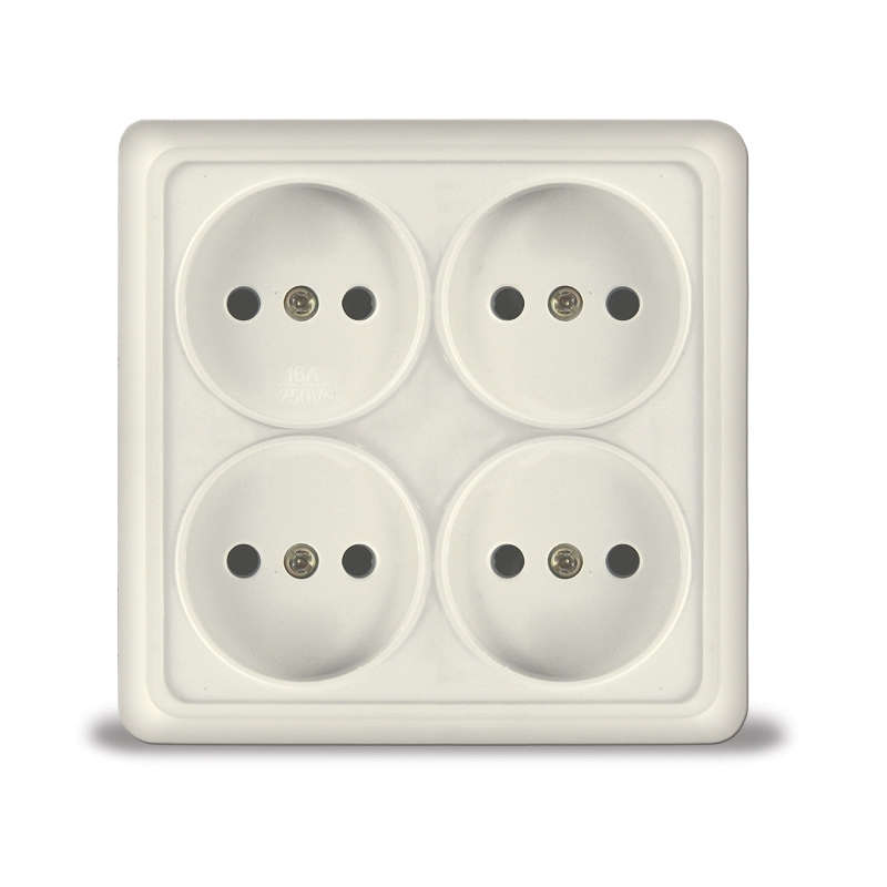 Технические характеристики «Розетка 4-м ОП Олимп 16А IP20 квадрат. без заземл. сл. кость UNIVersal 1170»