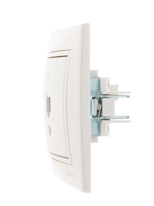 Технические характеристики «Розетка телефонная 1-м СП Mira RJ11 16А IP20 евро стандарт со вставкой жемчуж./бел. перламутр. LEZARD 701-3030-137»