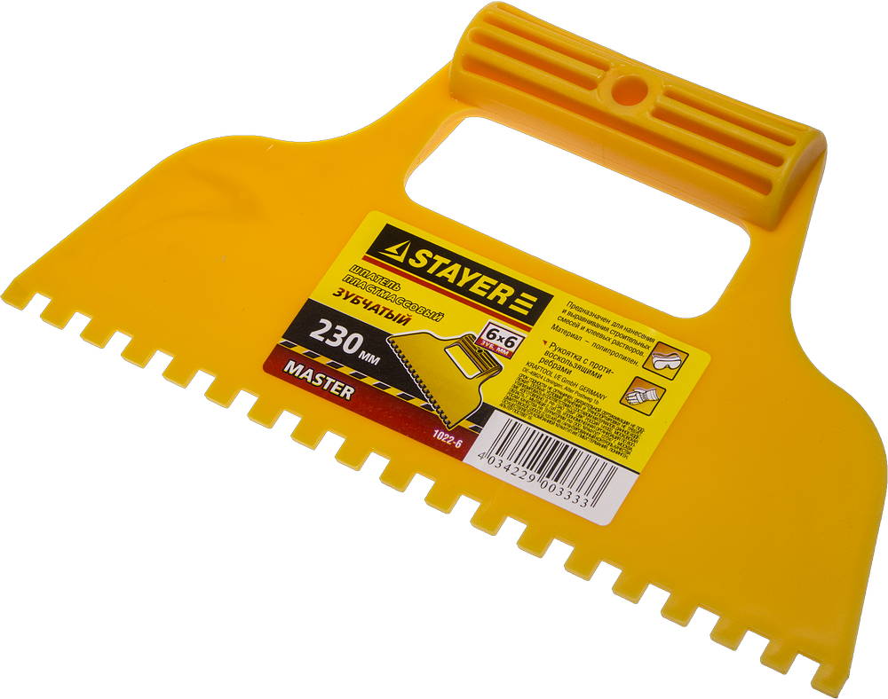 Отгружаем «STAYER 230 мм, зубчатый 6 х 6 мм, пластмассовый, малярный шпатель (1022-6)» с оптовых складов, рынков и напрямую с заводов.