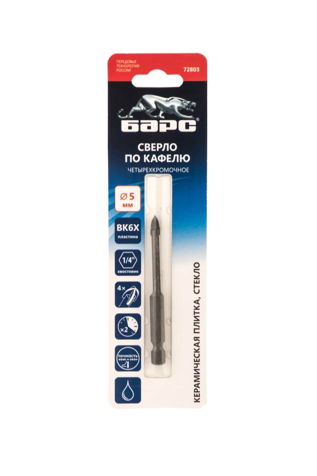 Отгружаем «Сверло по керамической плитке 5 мм, крестовая пластинка, шестигранный хвостовик Барс» с оптовых складов, рынков и напрямую с заводов.