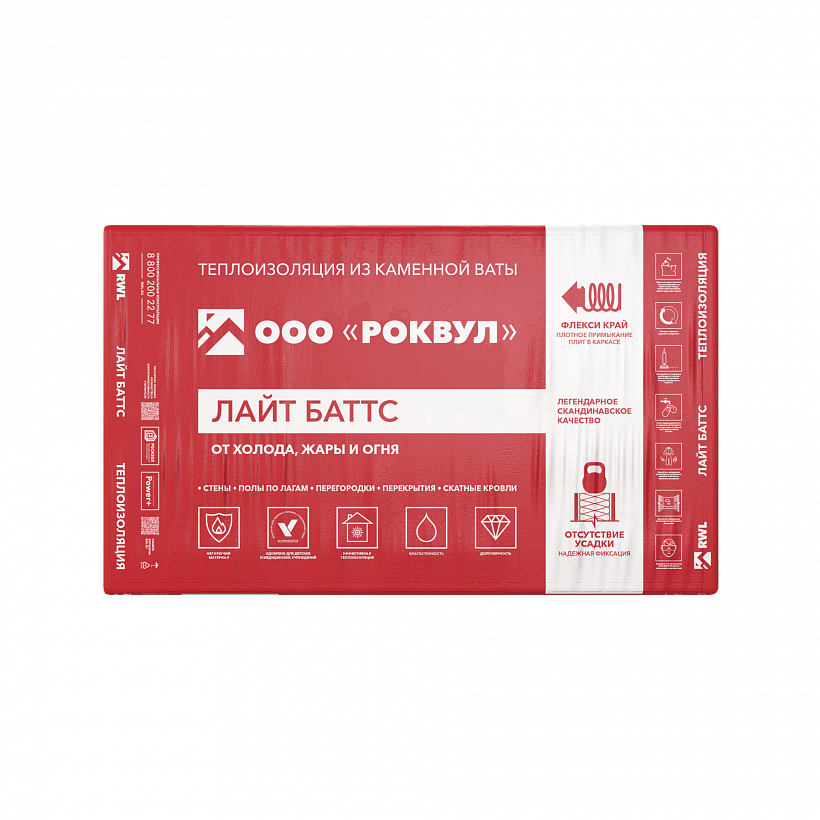 Технические характеристики «Утеплитель Роквул Лайт Баттс 1000х600х100 мм (3,0 м2 / 0,3 м3) (5)»