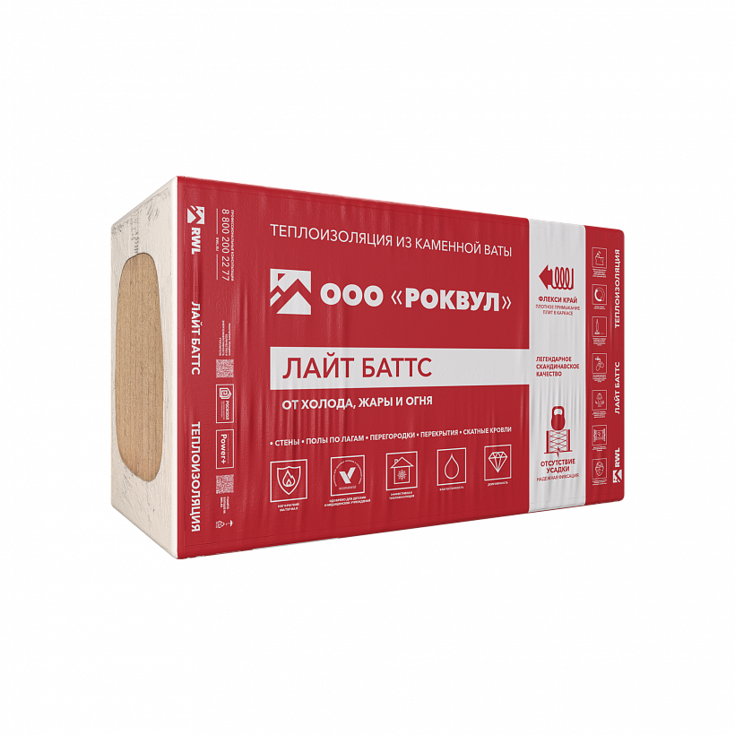 Основные преимущества утеплителя Rockwool Лайт Баттс 1000х600х50 мм:
