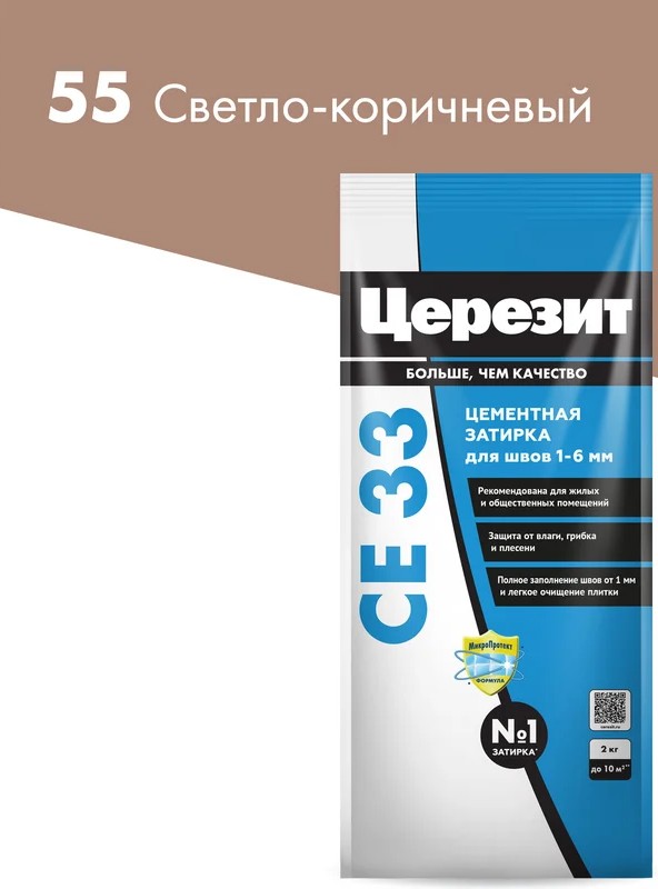 Ceresit CE 33 Comfort №55 Светло-коричневая 2 кг – затирка с противогрибковым эффектом для швов плиточных облицовок шириной до 5 мм.