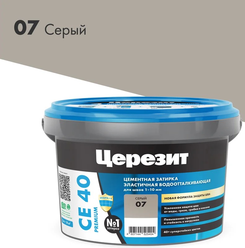 Затирка цементная для швов Церезит CE 40 Aquastatic №07 Серая 2 кг – водоотталкивающая затирка с противогрибковым эффектом для швов плиточных облицовок шириной до 10 мм.